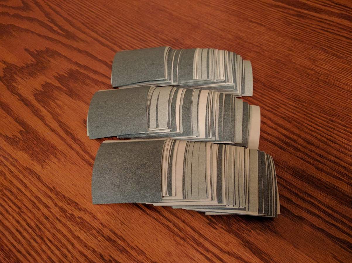 Then all the squares. The cutting actually took a long time because I wanted to be relatively accurate, so I only cut through one sheet at a time.